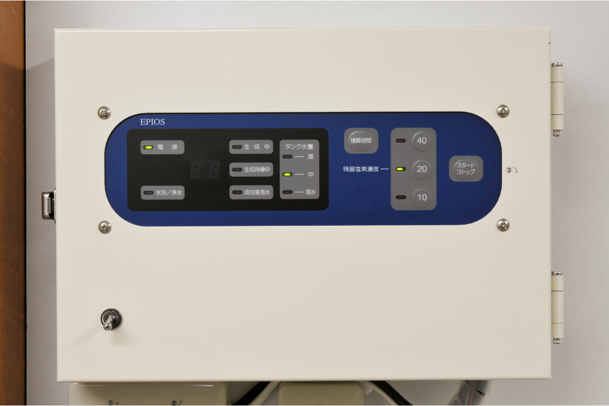 微酸性電解水は感染対策の一環として、各種製造衛生管理工程や給食センター、大学病院等で採用されています。当医院では歯科開業医院としては先駆け的に、開業時から院内全体に配管導入し、患者様の感染予防と衛生管理に努めています。