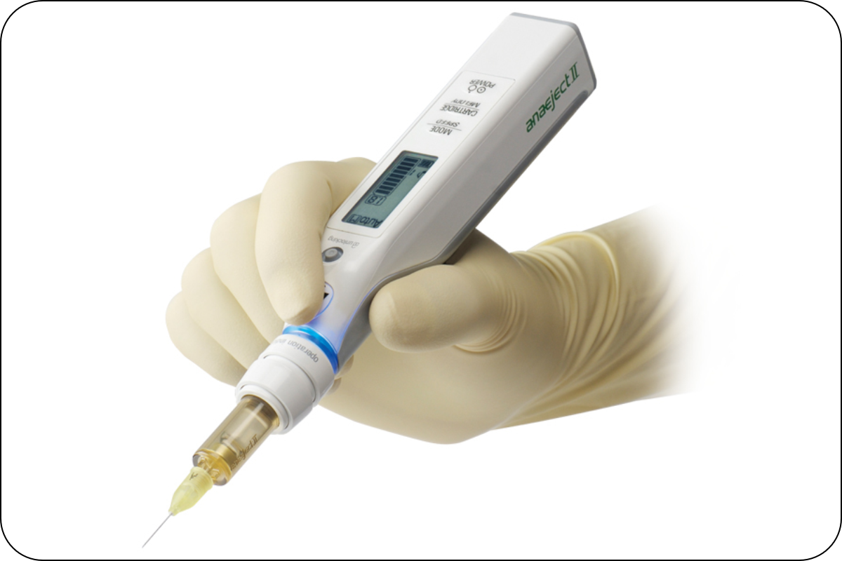 現在歯科で使用されているなかで最も細い針(33G針)を使い、電動のコンピューター制御の麻酔器(anaeJectⅡ)を使用し出来るだけ痛みのない治療を心がけています。