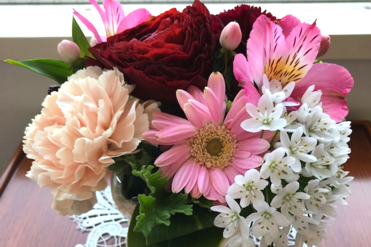 当院の1階は洗足で老舗で、いつも品質の良いお花をご提供されることで評判の『フローリスト花政』です。フラワーアレンジメントも定評があり、当医院の待合室のお花もお願いして穏やかな空間造りをしています。